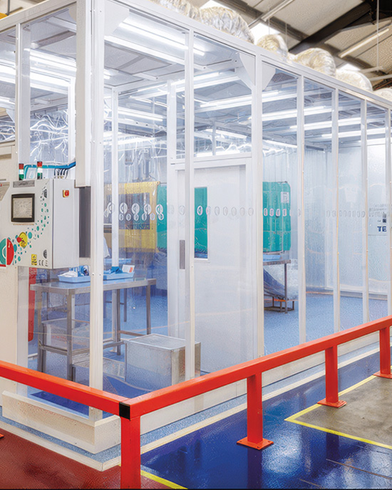 Unsere temporären Sauber-Räume reduzieren den Staub so, indem wir Schleusen mit Luft- und Filtersystemen einsetzen, um der ISO-Norm (Klassifizierung) 14644-8 zu entsprechen.